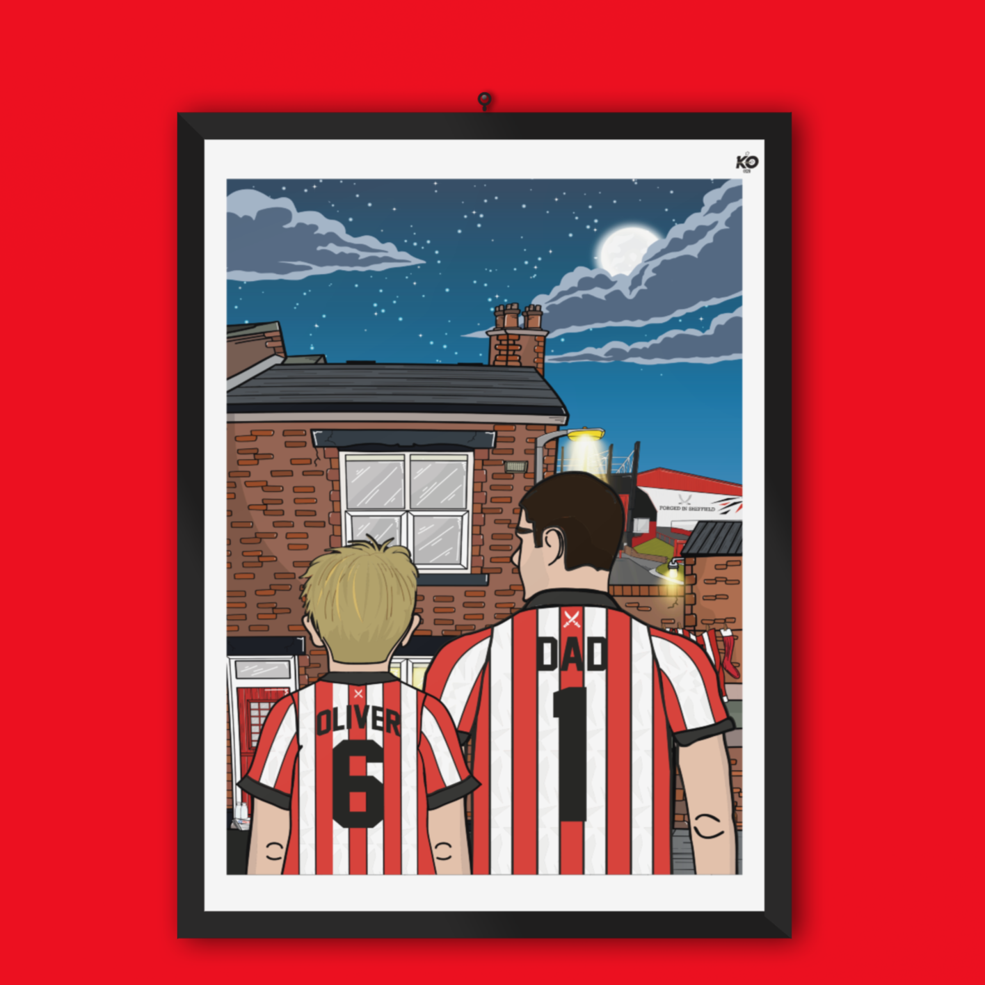 Personalised Sheffield United fc custom Dad & Lad TERRACE PRINT - SUFC, The Blades, Bramall Lane Football Gift Art Prints Gifts teen