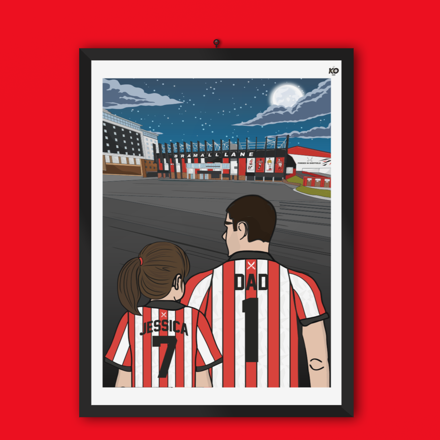 Personalised Sheffield United fc custom Dad & Lass PRINT - SUFC, The Blades, Bramall Lane Football Gift Art Prints Gifts teen