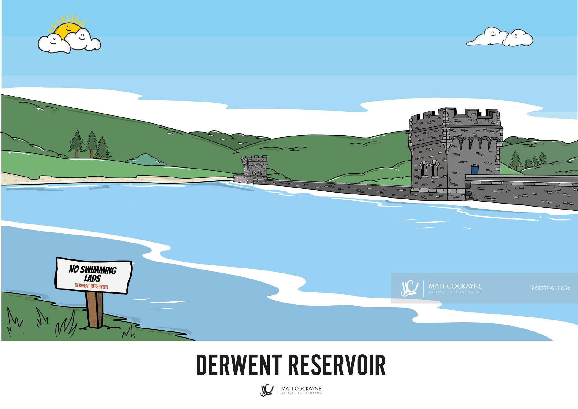 DERWENT RESERVOIR - Peak District Prints - Wall Art - Poster - Print - Canvas - Illustration