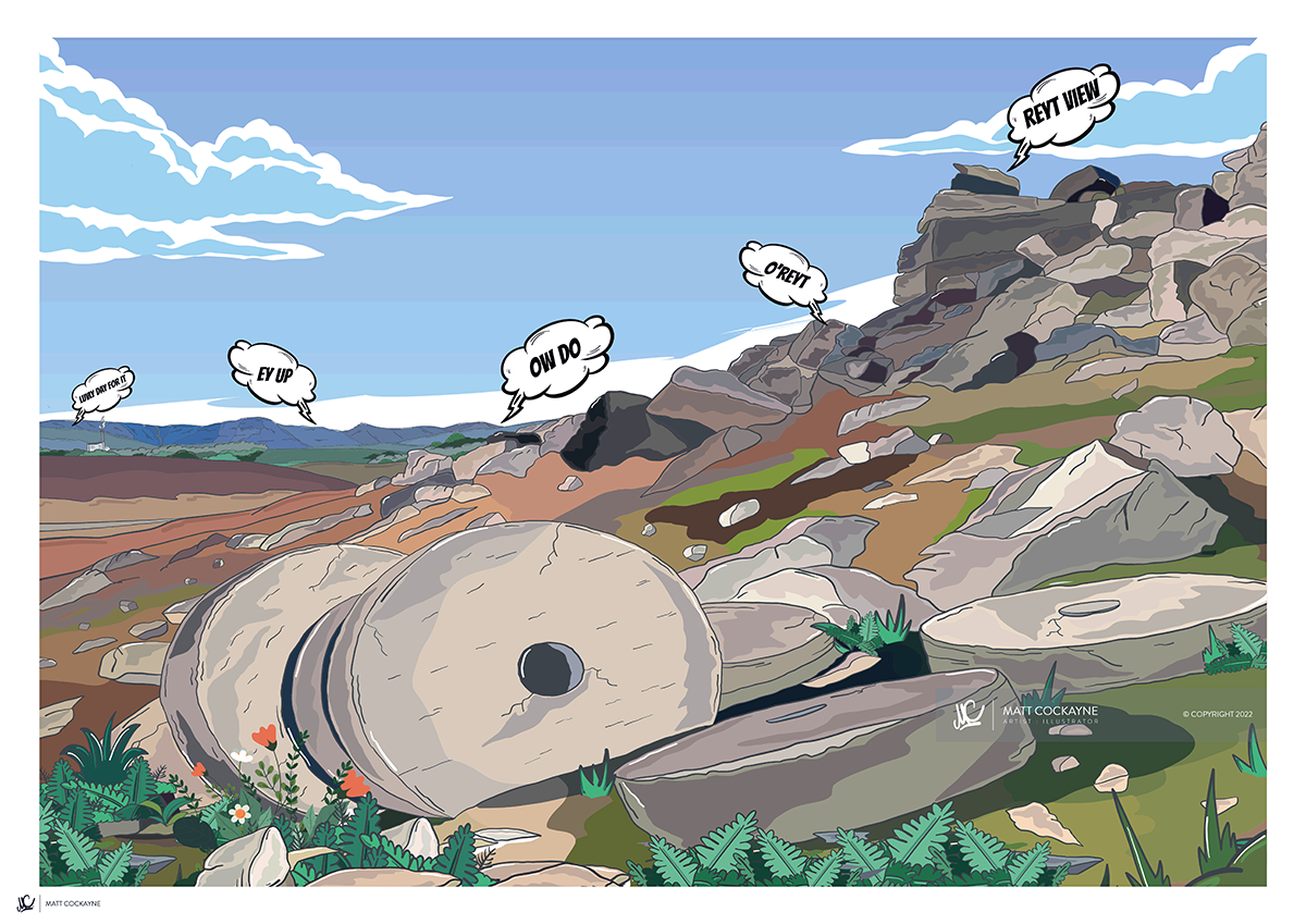 EY UP, OW DO, O'REYT - Peak District Prints - Wall Art - Poster - Print - Canvas - Illustration
