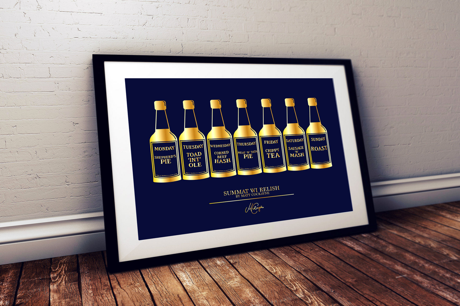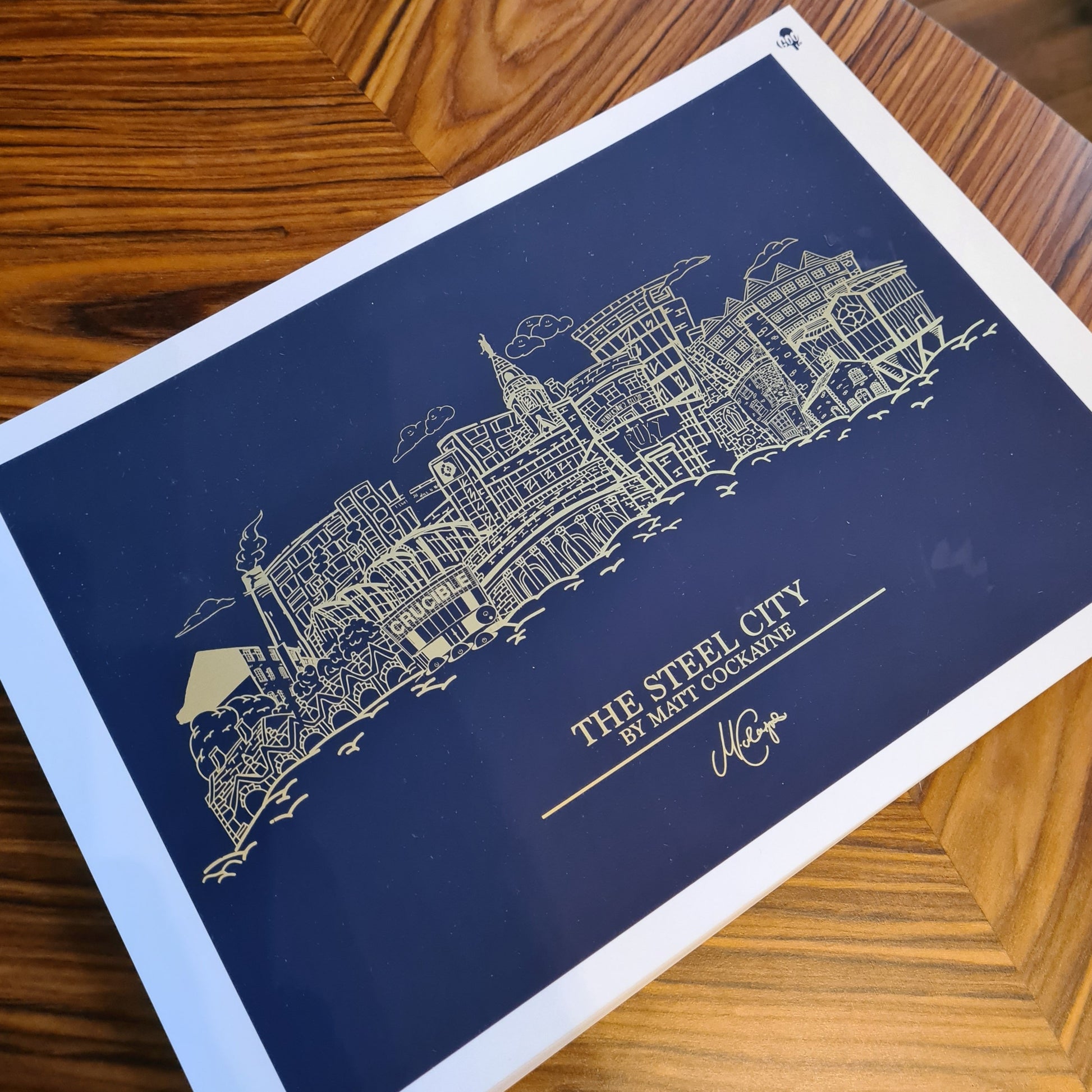 Each artwork is A4 and is printed on a matt laminate 350gsm card the gold foil blocked design.