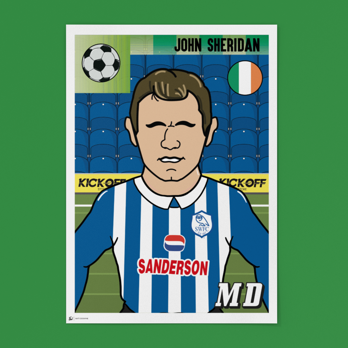 Celebrate Sheffield Wednesday’s legendary midfielder John Sheridan with this retro Panini-style sticker. Renowned for his vision, passing, and goal-scoring ability from midfield, Sheridan is a fan favourite and a key figure in Owls history.