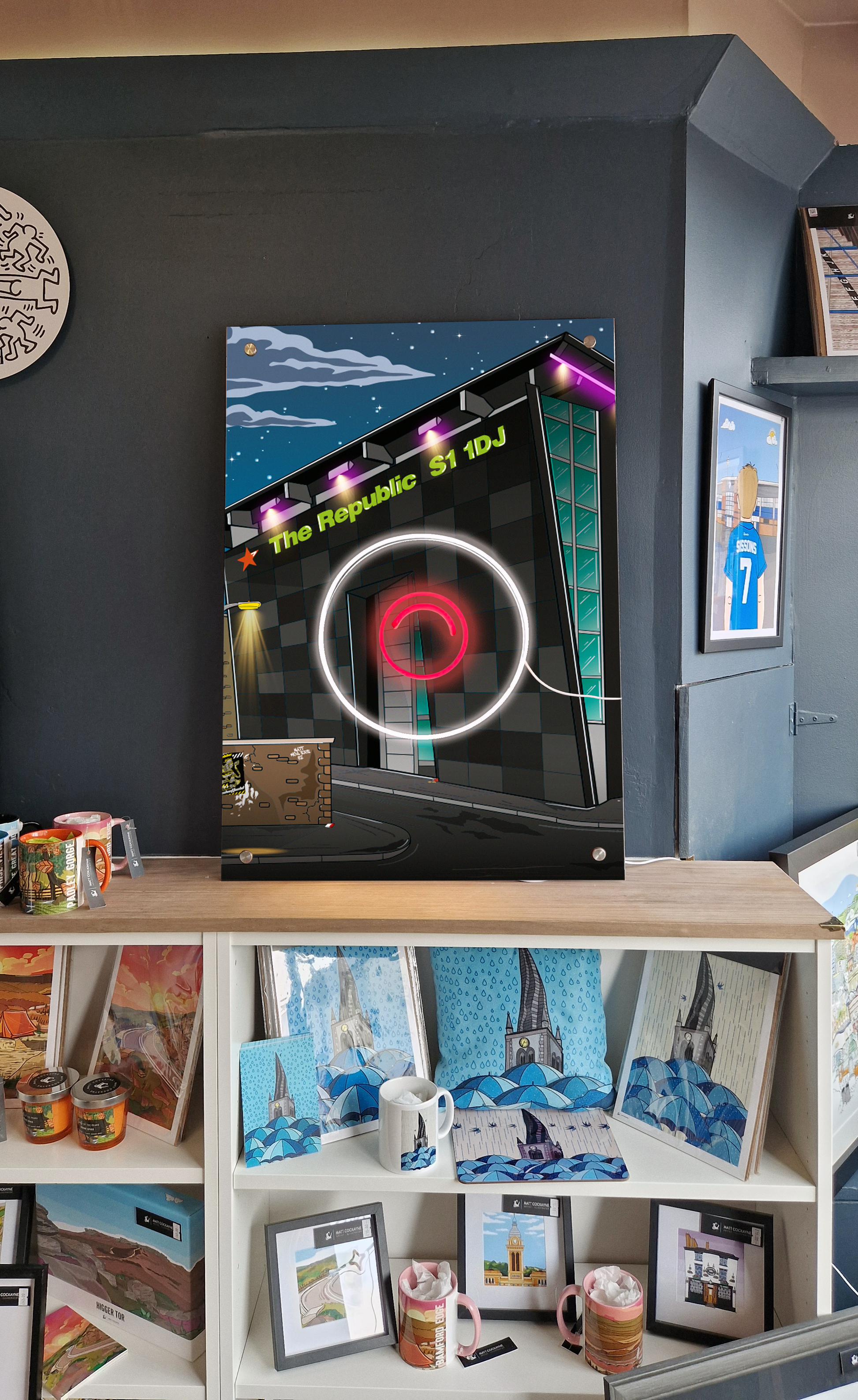 Neon Art : The art is printed on A1 aluminium dibond board and laminated. The aluminium is fitted with steel stand of wall fittings so once installed it stands away from the wall.