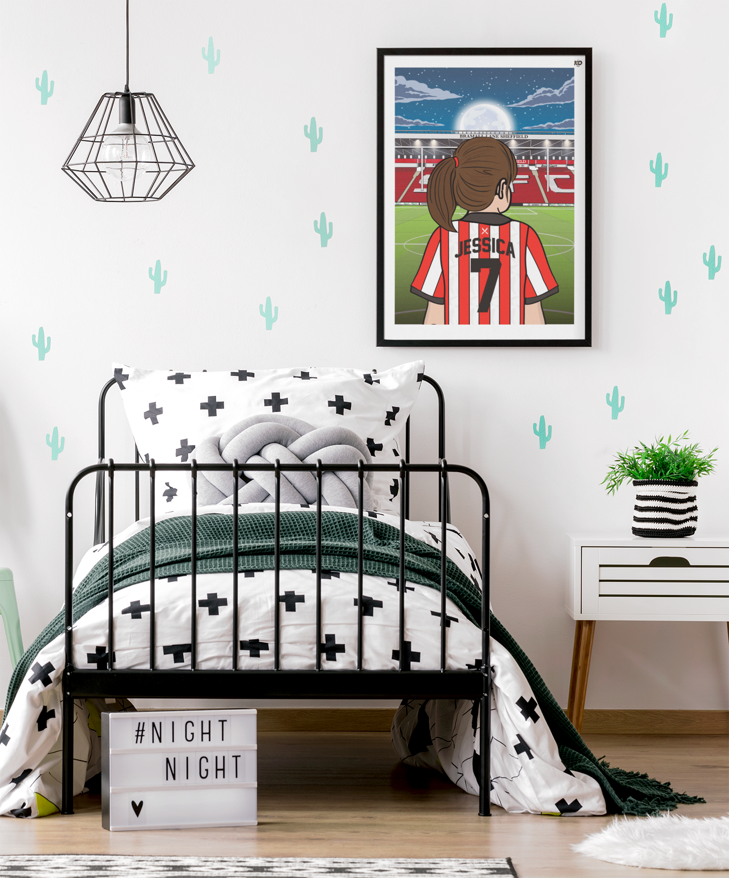 Personalised Sheffield United FC custom Lass PITCH PRINT - SUFC The Blades, Bramall Lane, Football Gift Art Prints Gifts efl