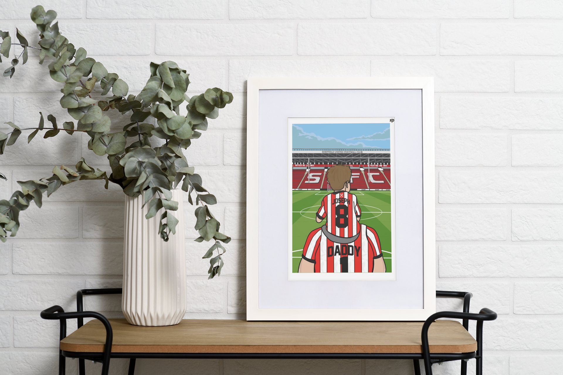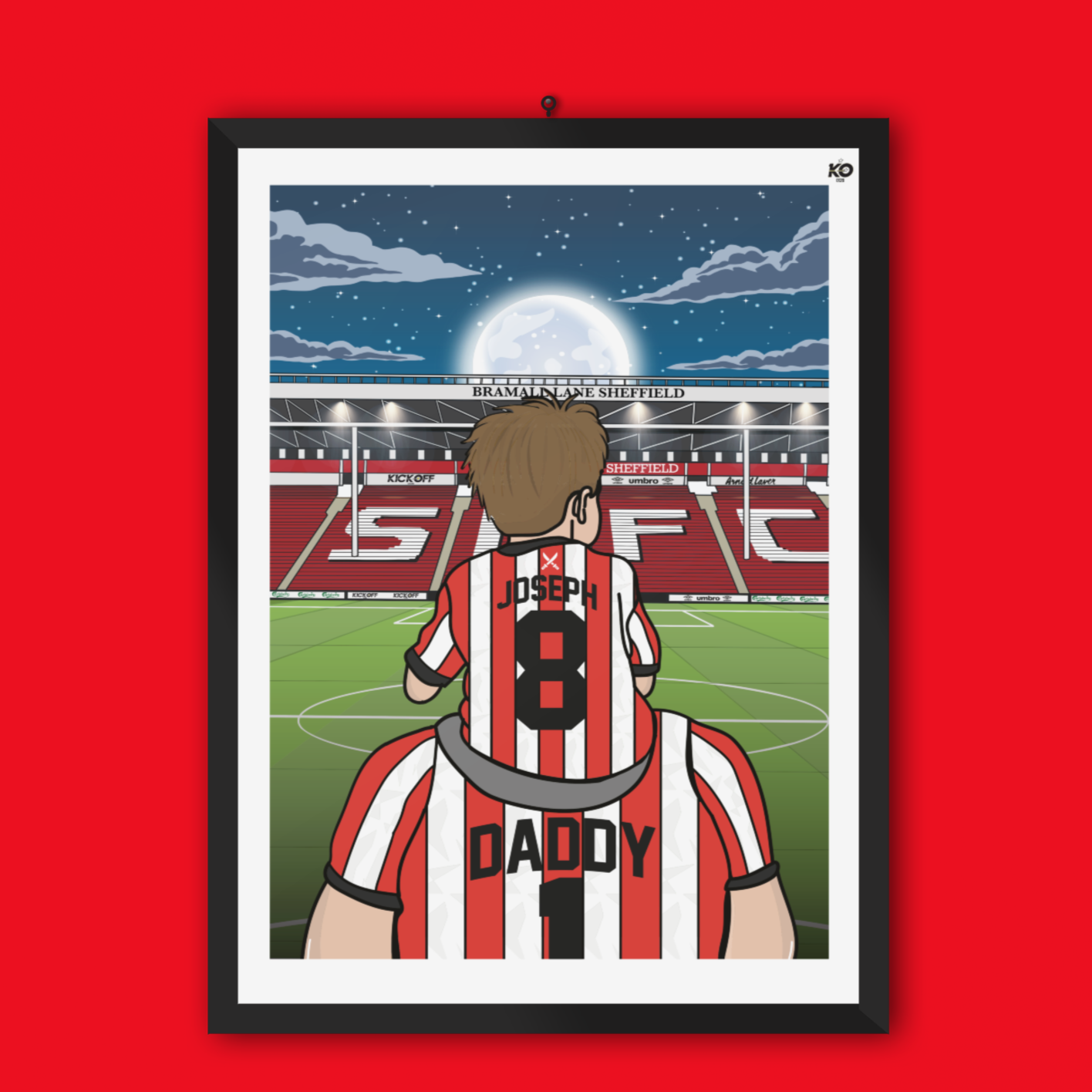 Sheffield United fc custom Dad & Lad PITCH PRINT - SUFC, The Blades, Bramall Lane Football Gift Art Prints Gifts efl