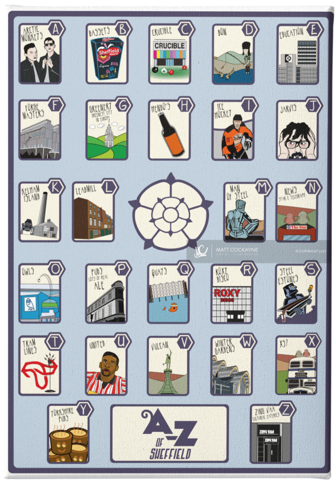 THE A-Z GUIDE TO SHEFFIELD - Sheffield Prints - Wall Art - Poster - Print - Canvas - Illustration